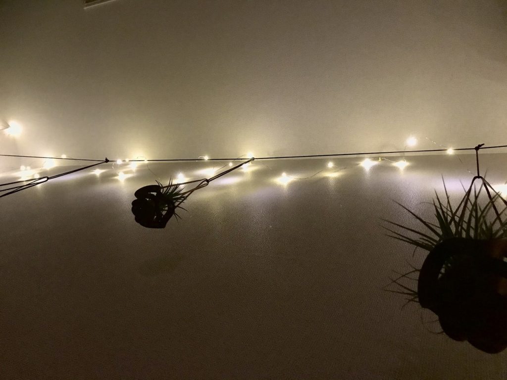 エアープランツを垂らししてはライトを巻き巻き(ソファの上に吊るしてます)