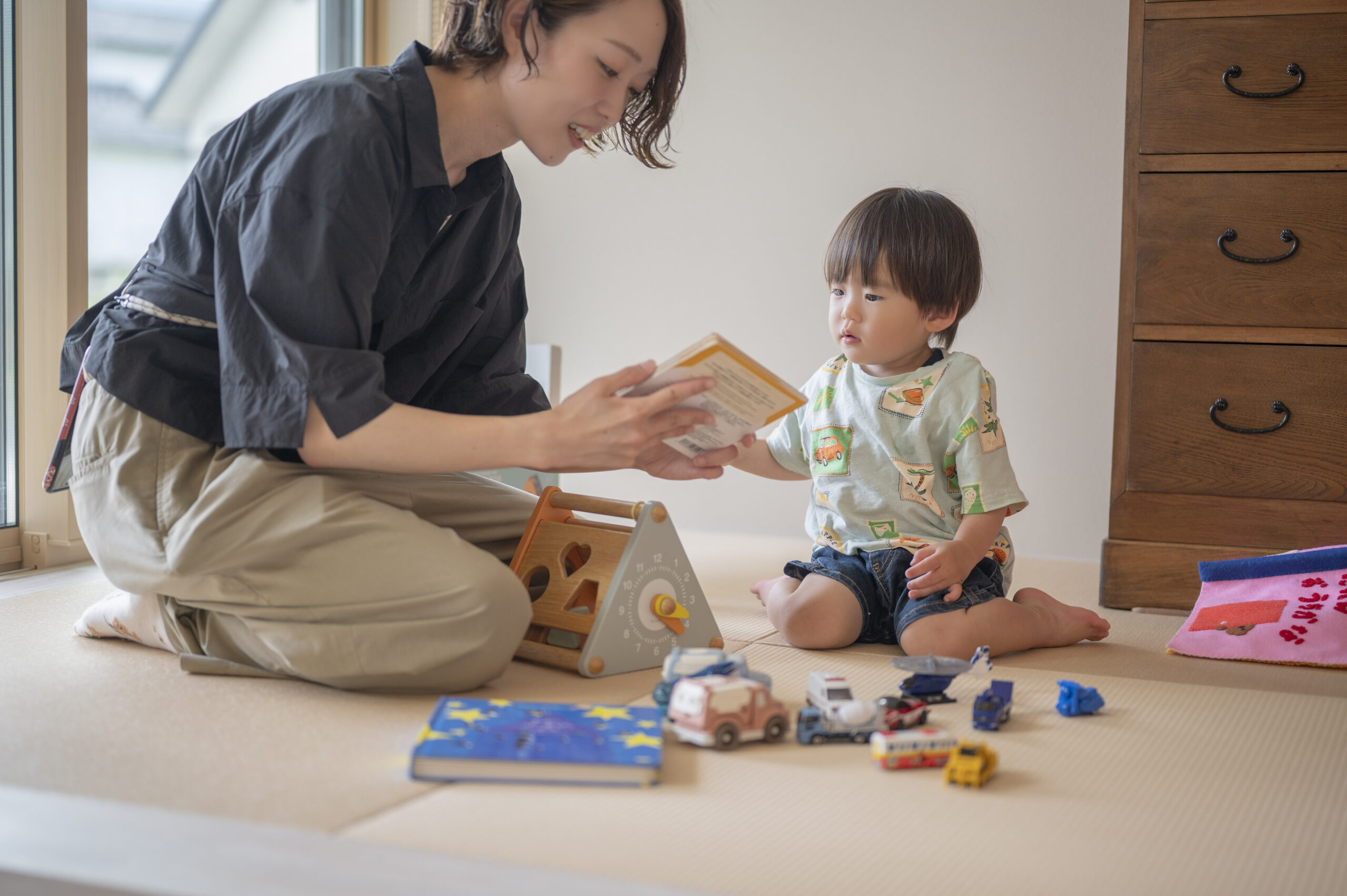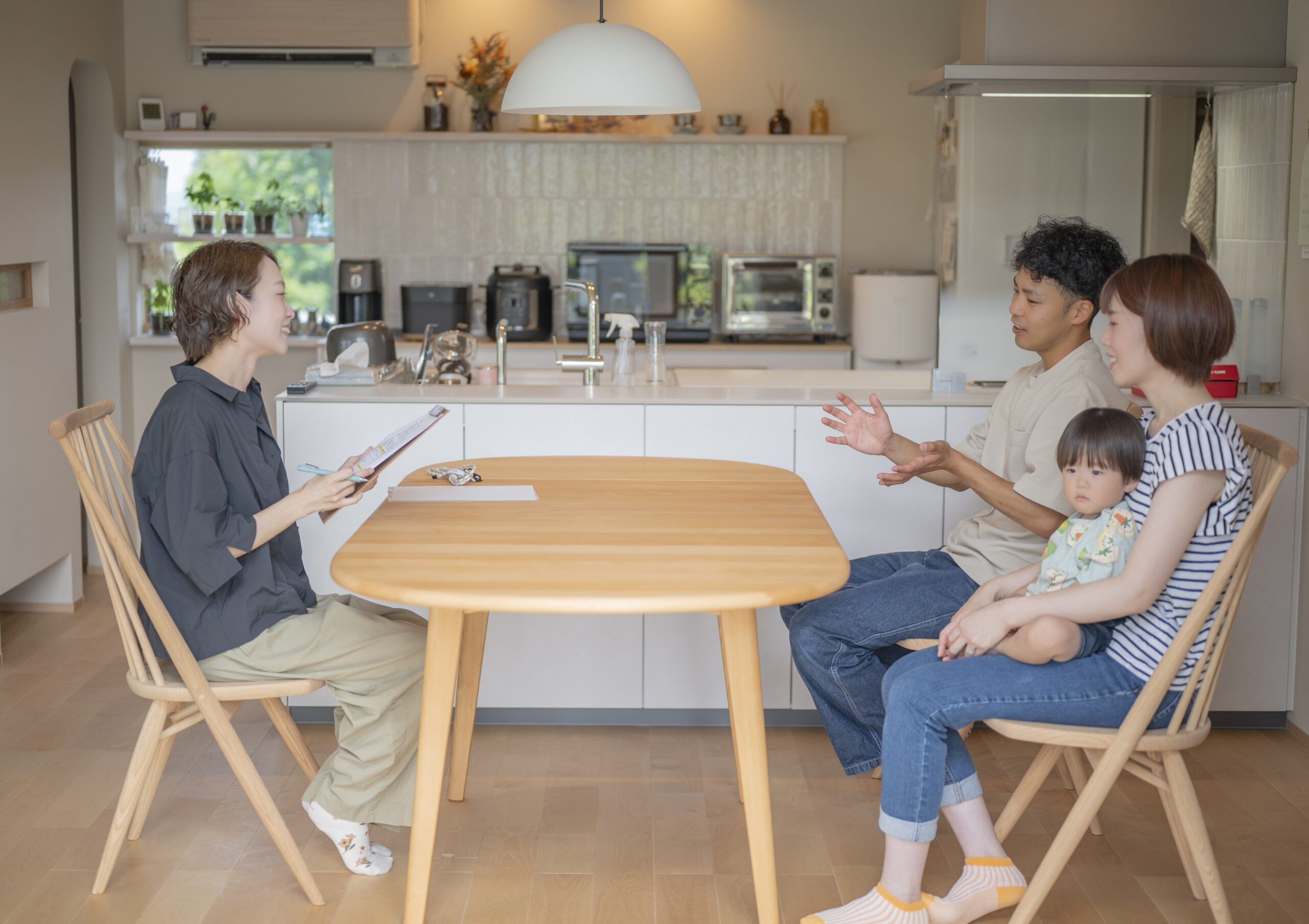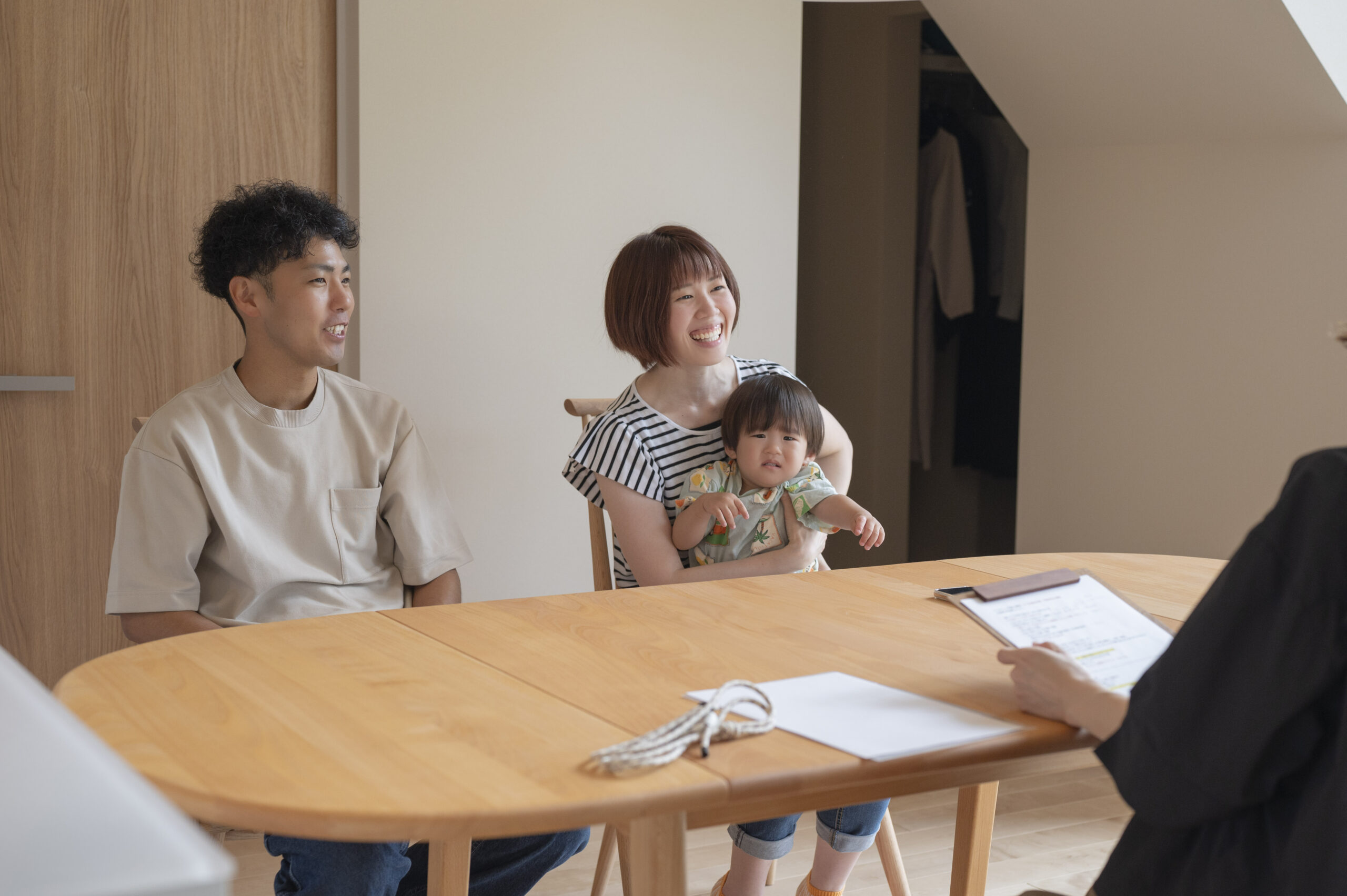 奥様「間取りってどこでも書いてもらえると思うんですけど、丸山さんの間取りが1番面白くて。ここなら建てたい家を建てれるんじゃないかって思いました。あと他のハウスメーカーにも話を聞きに行ったんですけど、子どもが駄々こねて話を聞くどころじゃなくって(笑)保育士さんがいたのも決め手の1つでしたね。ベビーベッドだけ頂けるけど寝ないし、交代で抱っこしながら立ちっぱなしで聞くのがしんどくて結構保育士さんの存在は私の中では大きかったです。打ち合わせに集中できるし安心できるので。まさかオムツも替えてもらえるなんて思いませんでした!」