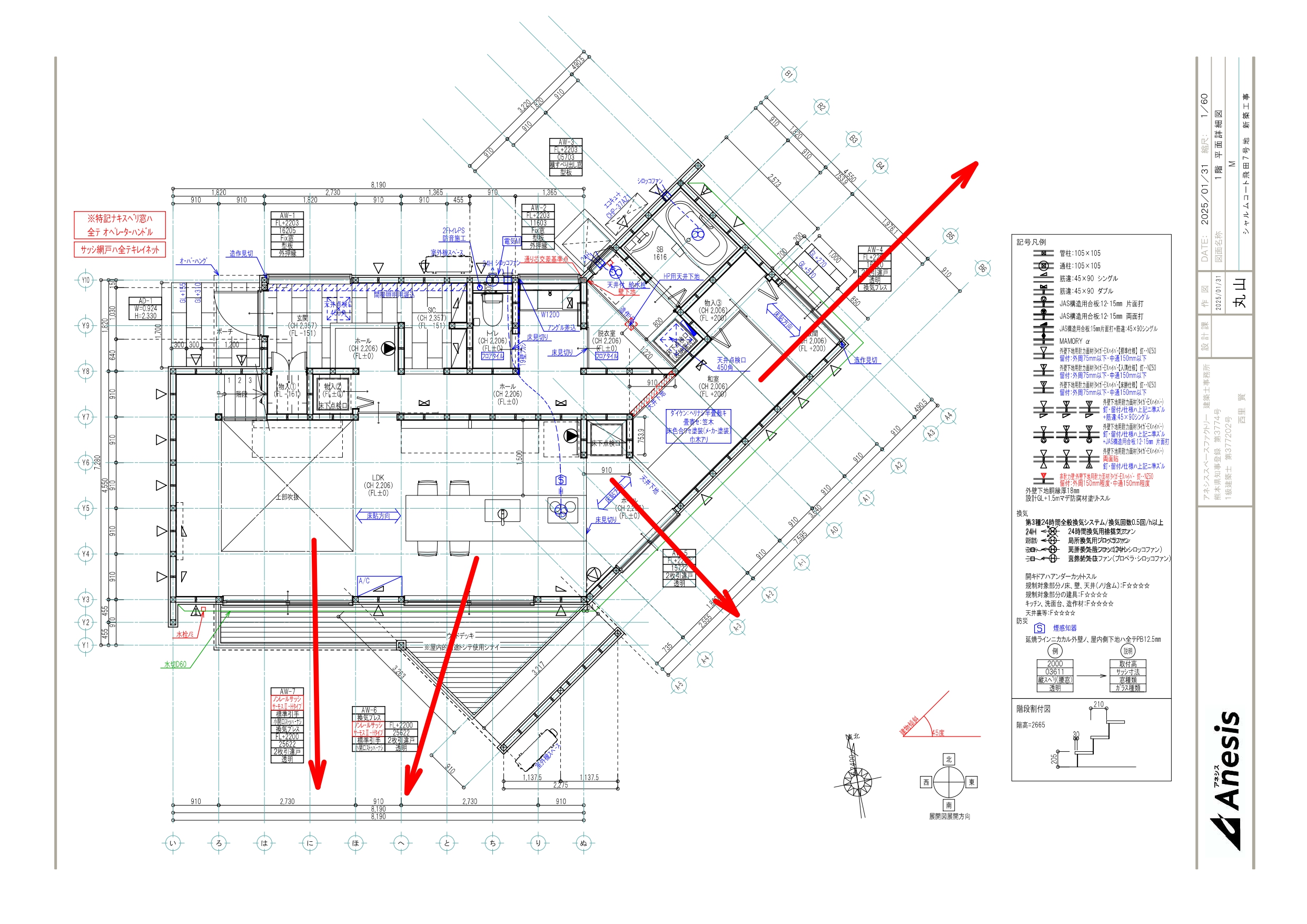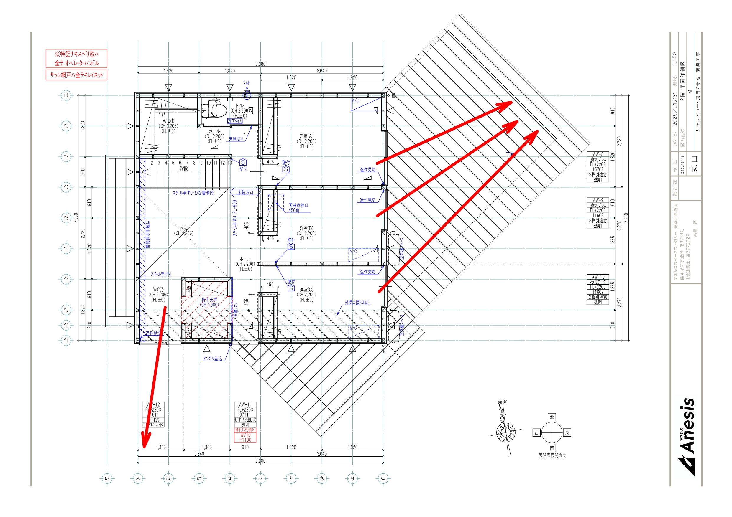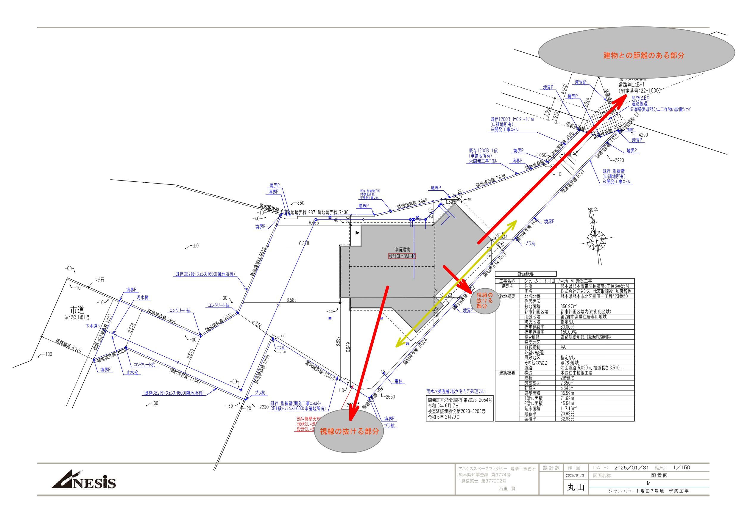 なので前回同様、まずは周辺の既存建物の配置をしっかりと図面に落とし込んで、一番視線が抜ける場所を検討します。