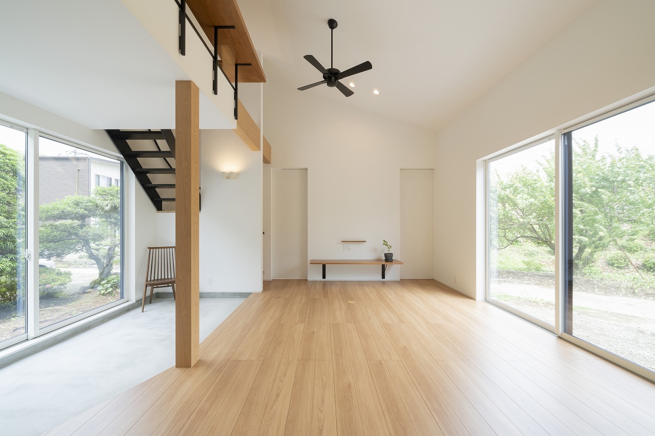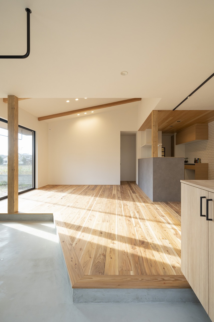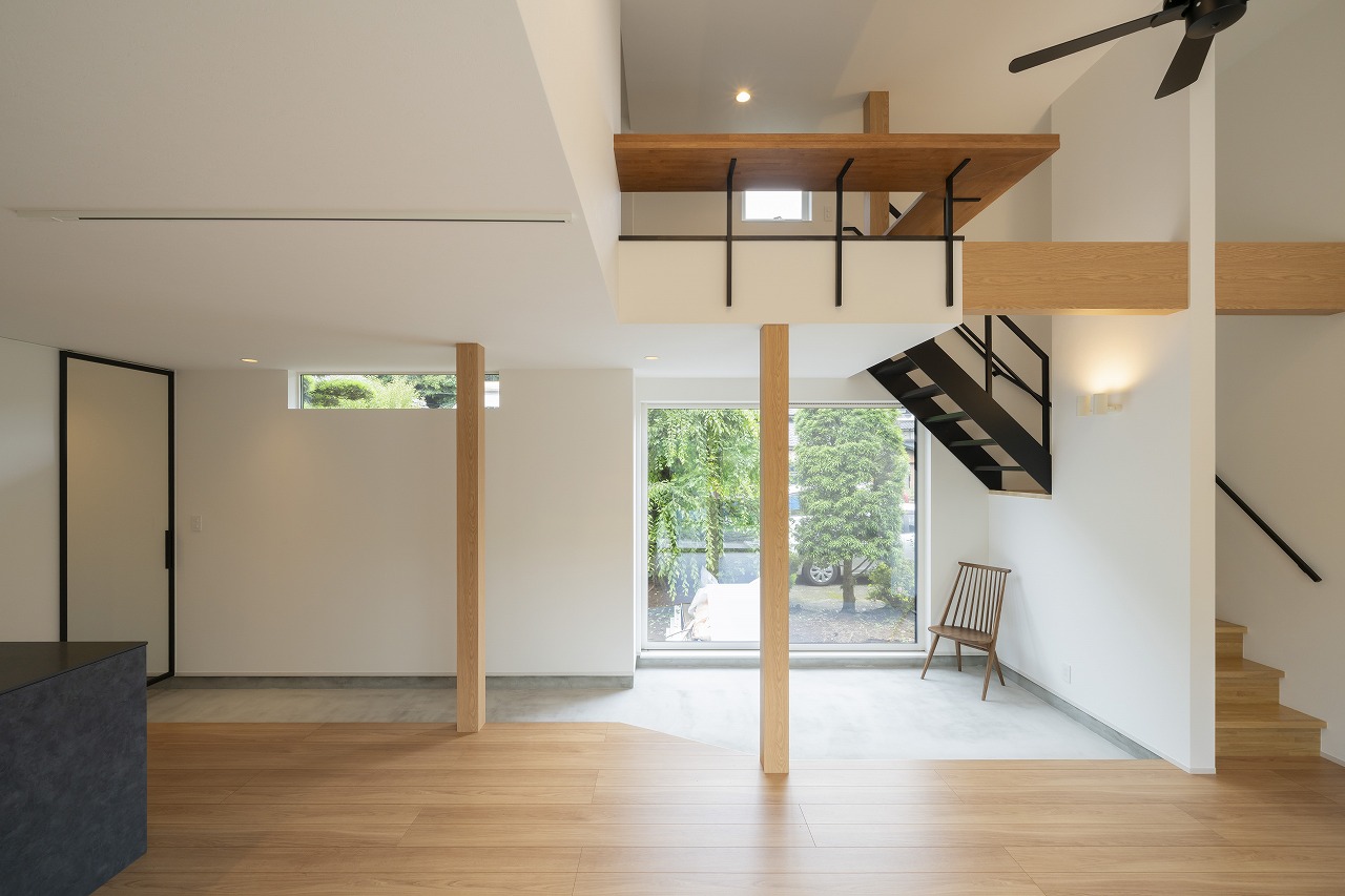 リビングからみるとこんな感じです。このお家のご主人様は社会人野球をされてる方なので床に腰掛けてグローブやスパイクのお手入れをしたり。
