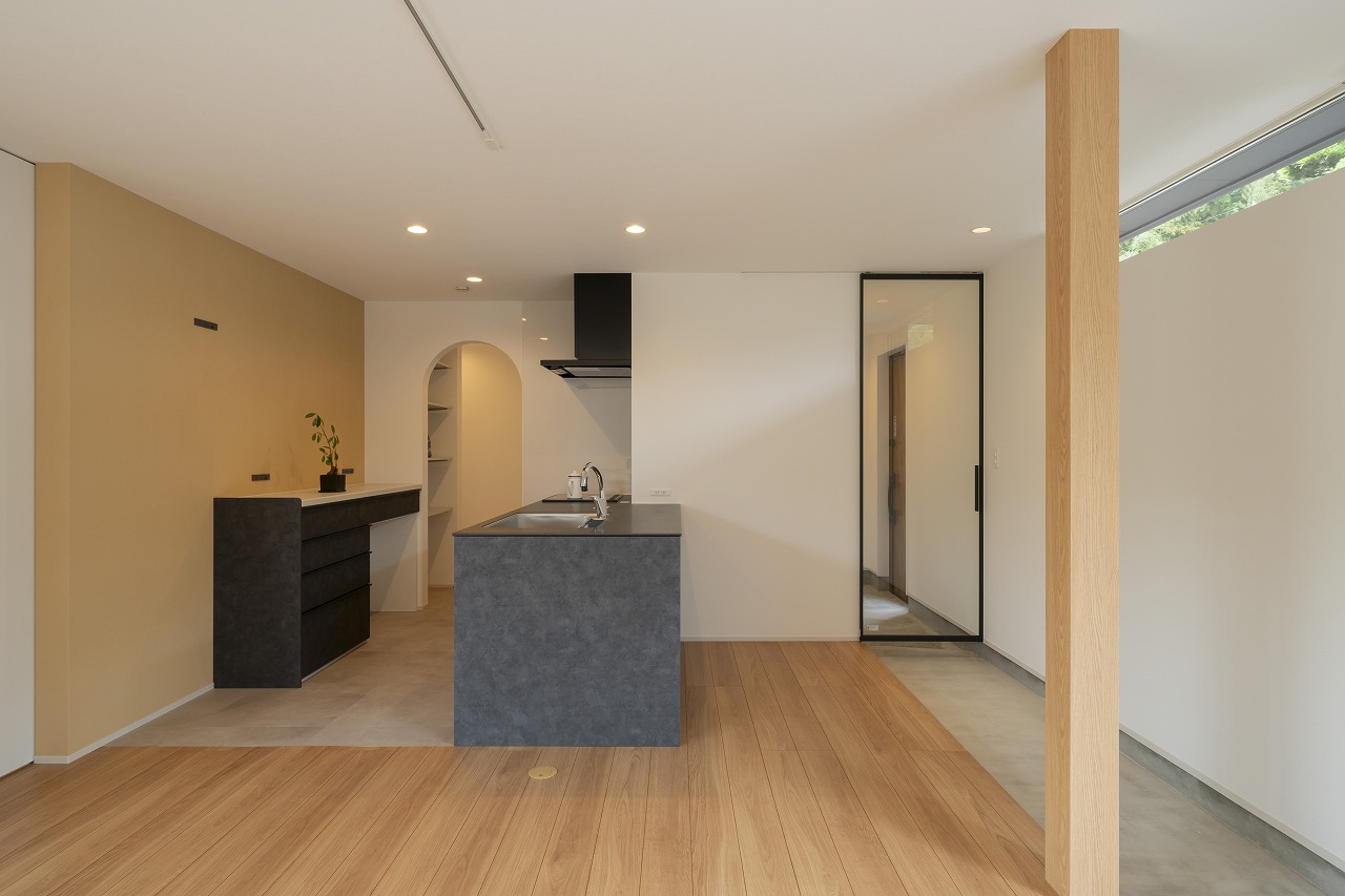 ちょっと角度を変えて。右側に進むとリビング土間(SIC、フリースペース兼ランドリー)へ。