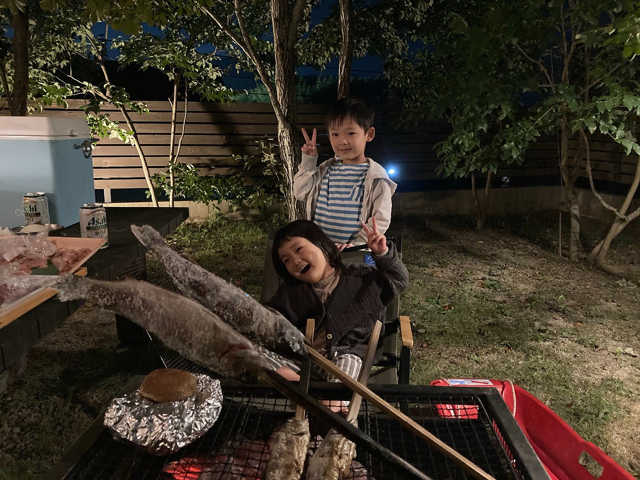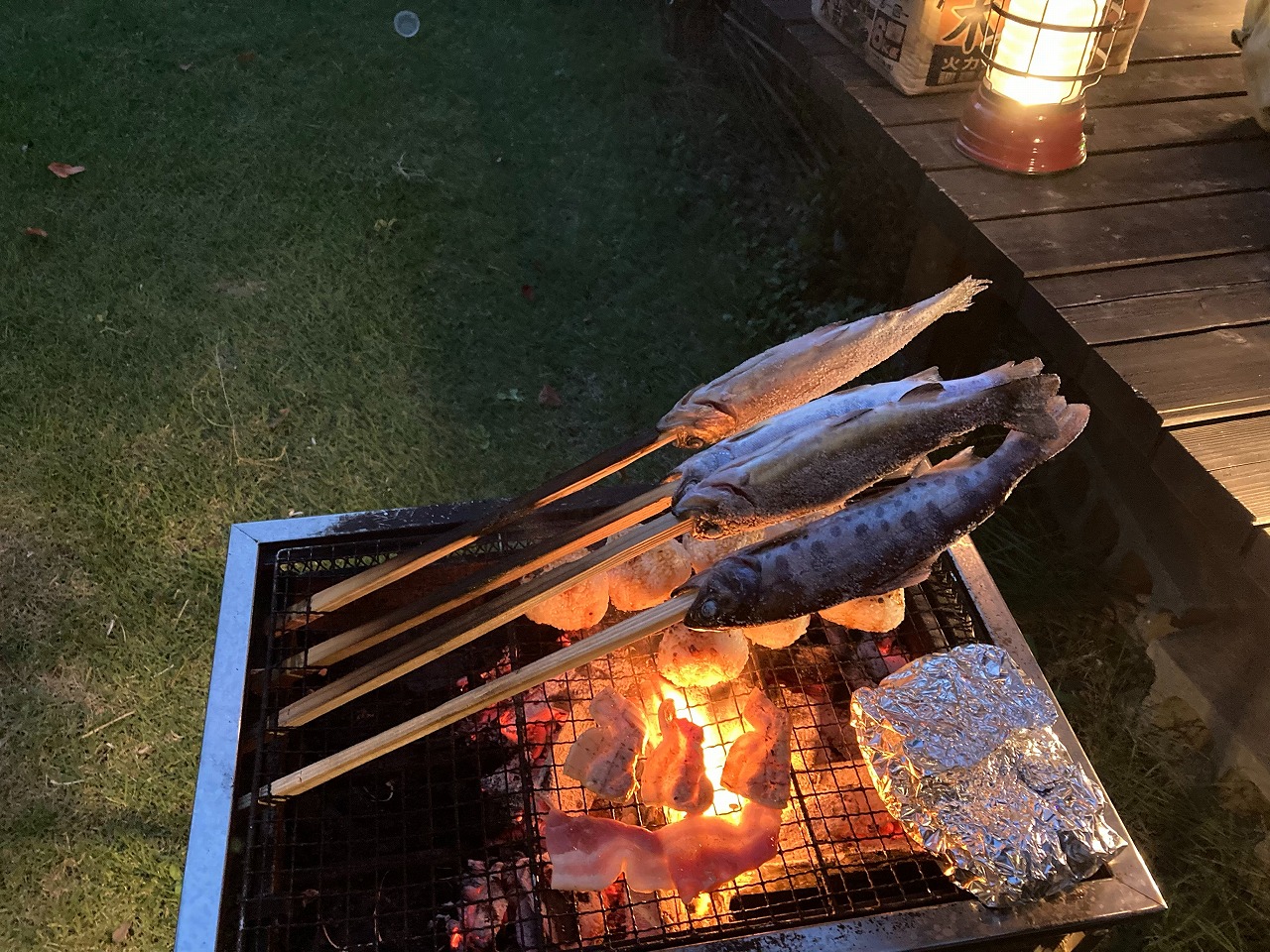 せっかくなので釣ったお魚は串にさしてじっくり焼きます。