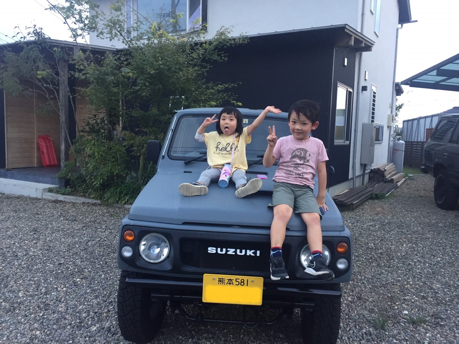 こぞうさんがジムニー君によじよじとのぼっていました。