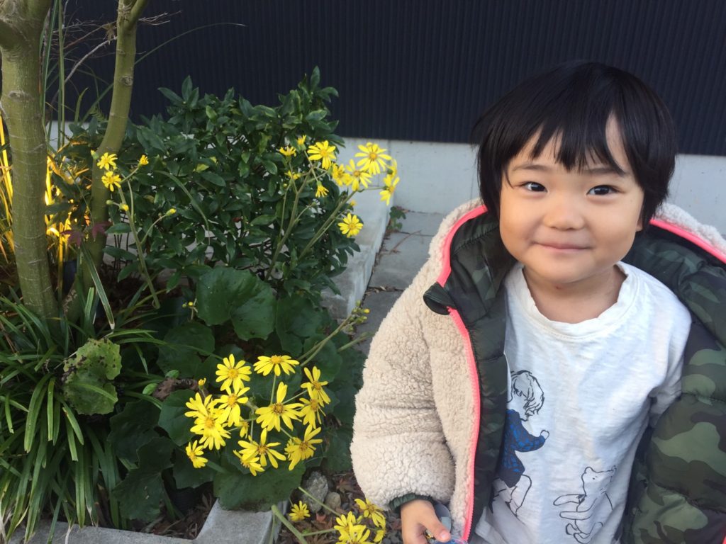 花の写真を撮っていると我が家の「騒がしいお花」が近寄ってきました。