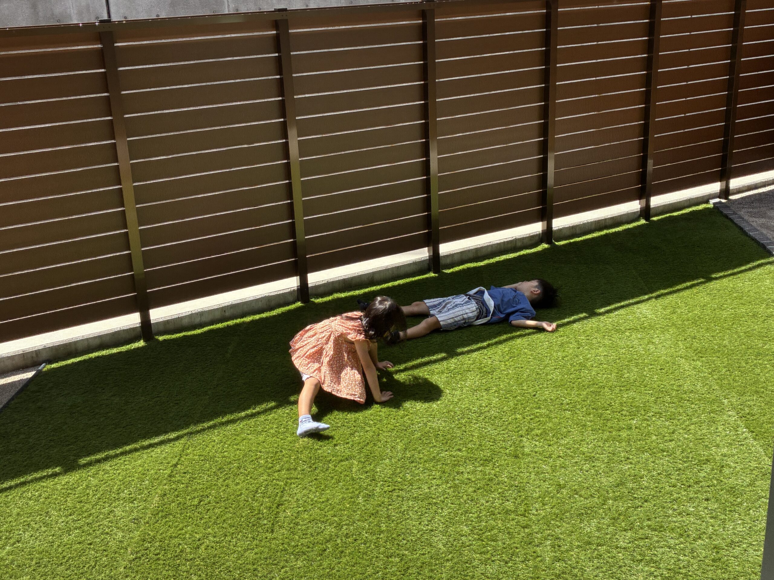 こちらは引渡し当日、のびのびと人工芝を堪能するお子様です♪