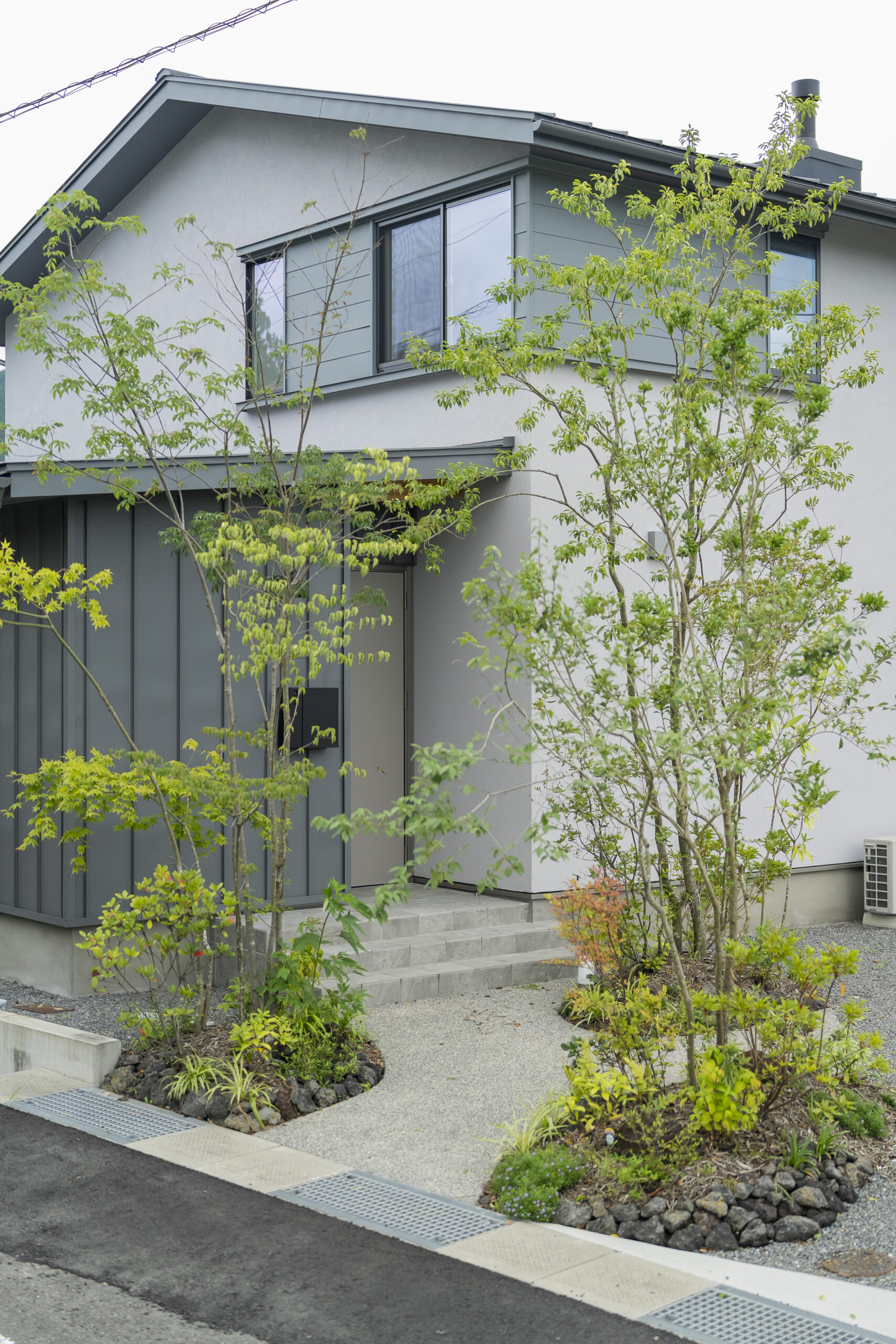 お家を囲うようなたくさんの緑や玄関に誘われているようなアプローチがとても素敵です😊