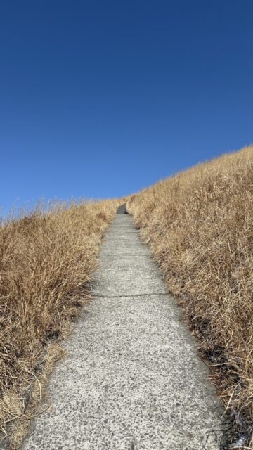 見上げた時の突き抜けるような青空と、足元に広がる冬の枯草色。