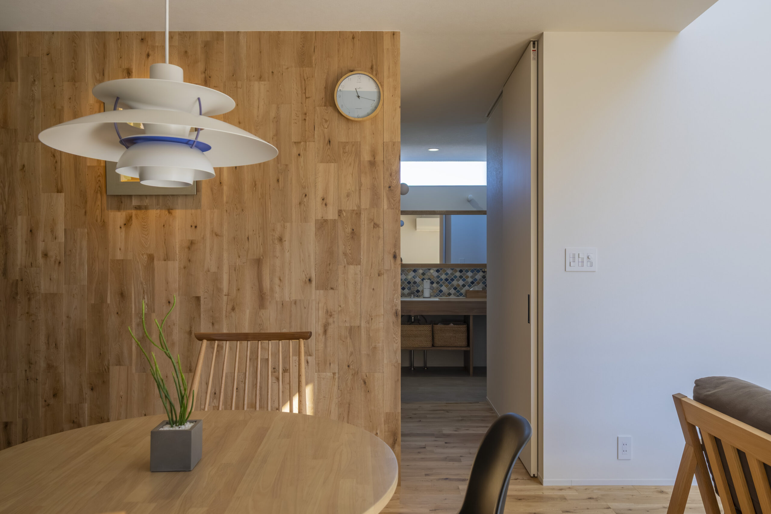 LDKはシンプルに整え、選び抜かれた素材やインテリアが際立つ、上質な空間に。キッチンにはデザイン性と機能性を兼ね備えたグラフテクトを採用。