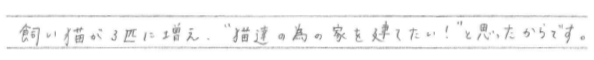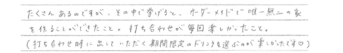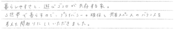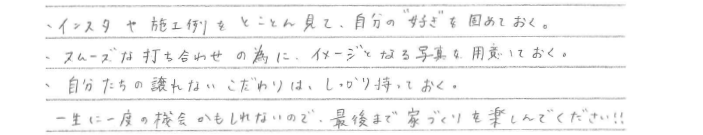 オーダーメイドで唯一無二の家を建てることができました。 熊本県合志市 / Y様 Q 家づくりを始めたきっかけを教えてください。 A Q 家づくりでどういうことを重視されましたか? A Q アーキハウスで建てようと思った決め手を教えてください。 A Q アーキハウスで家を建ててよかったと思うことはなんですか? A Q 家づくりを進めていくなかで、思い出に残ったことは何ですか? A Q これから家づくりを始められる方に一言アドバイスをお願いします。 A