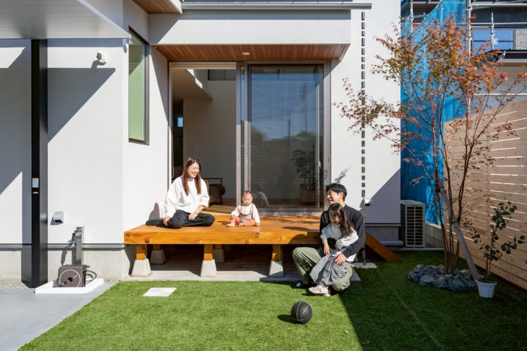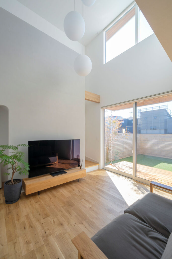 優しく洗練された印象を与える真っ白な塗り壁に、軒天の木目が柔らかな表情を覗かせる。「家族の暮らしが染み込むことで完成する、ノートのような家」をコンセプトに、余白を大切に設計。