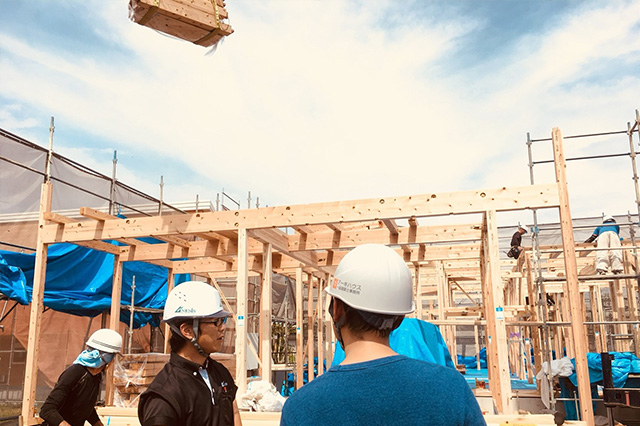 工事の進捗に応じて現場打ち合わせや立会い確認をお願いしています。またお時間のある際は是非現場へお越しください。常に現場は綺麗にしておりますので、家づくりの進み具合を確認することができます。